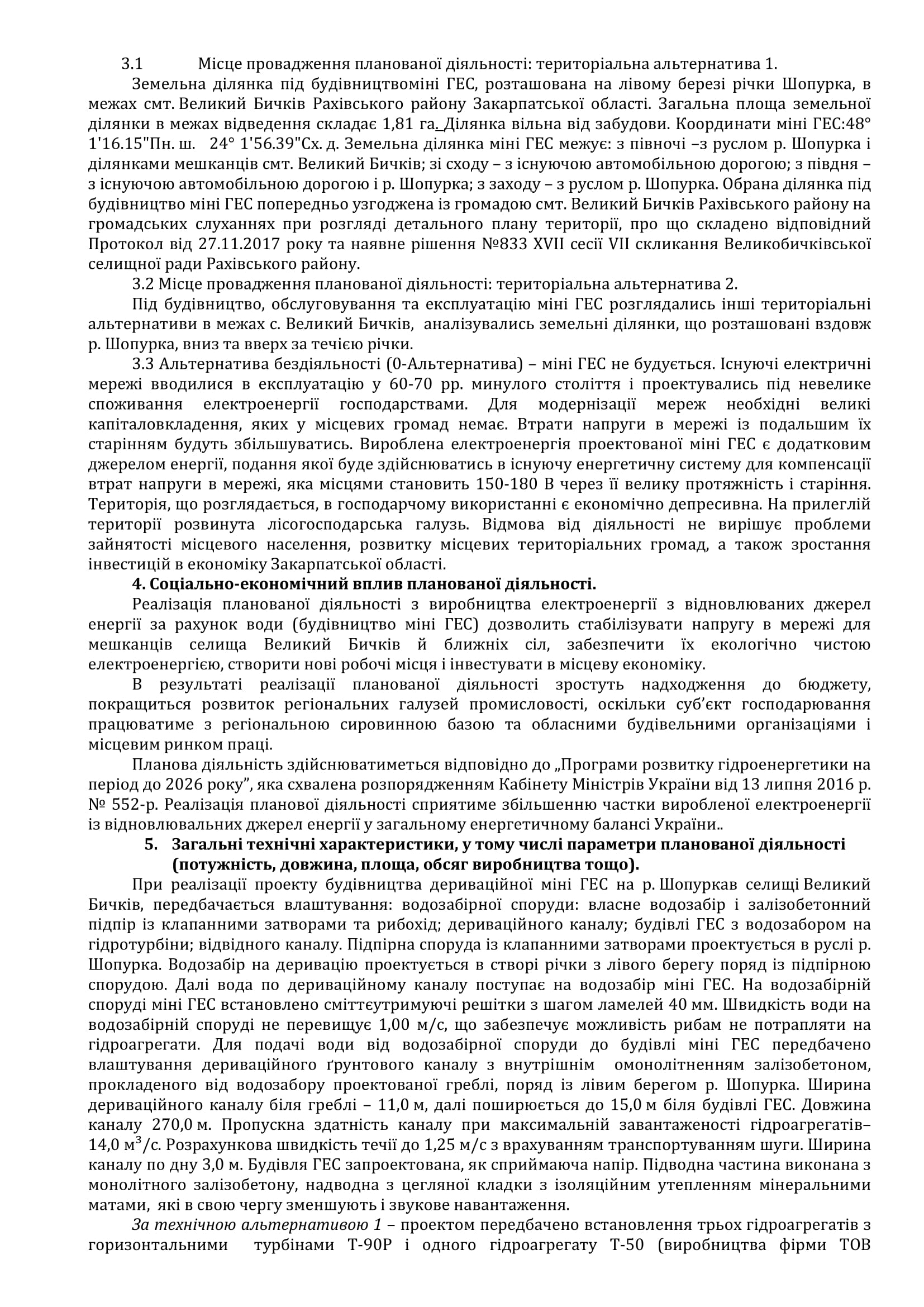 району Закарпатської області (далі міні ГЕС). Мета планованої діяльності – вироблення
