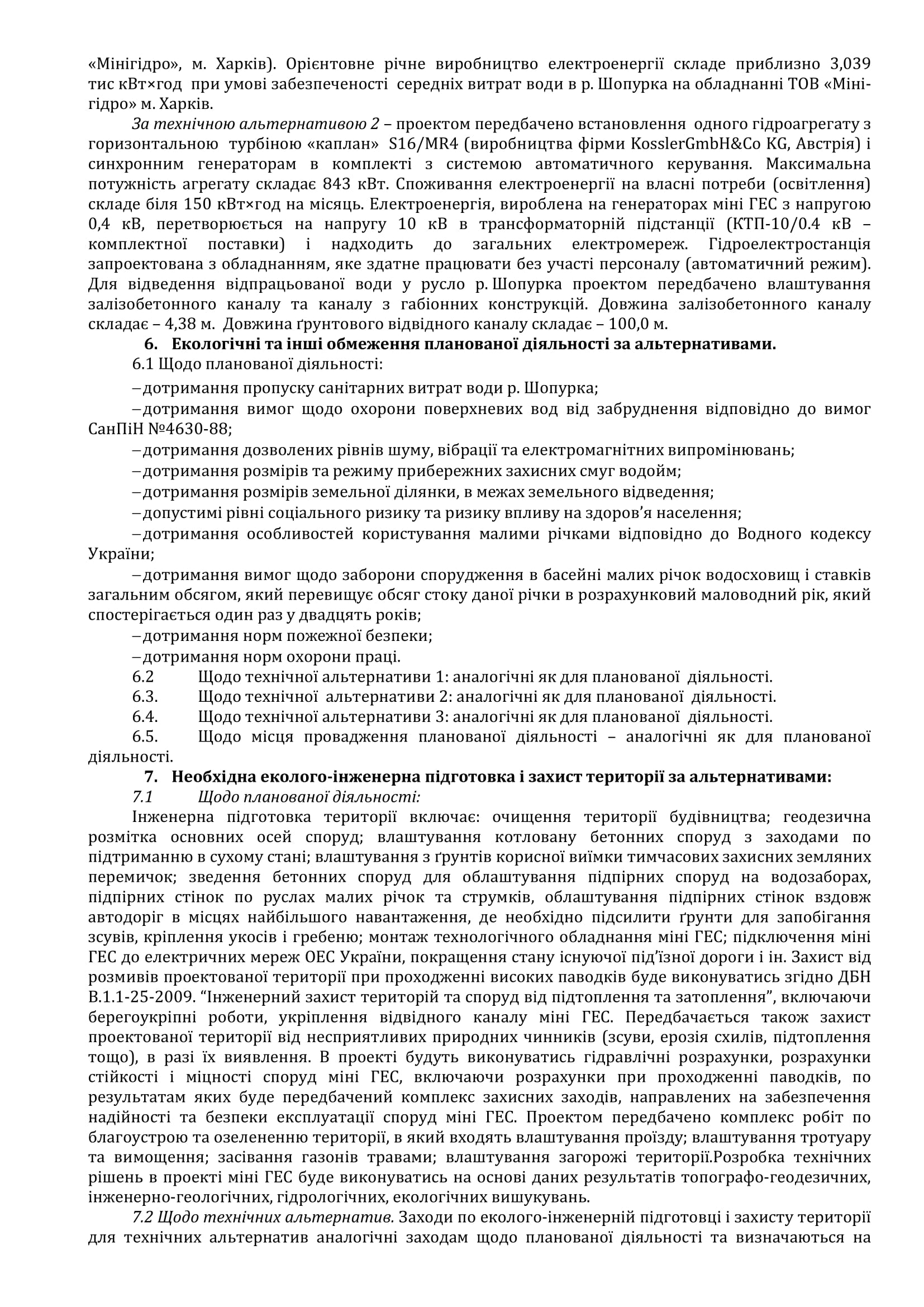 8.2. Щодо технічної альтернативи 3. Будівництво та експлуатація міні ГЕС руслового