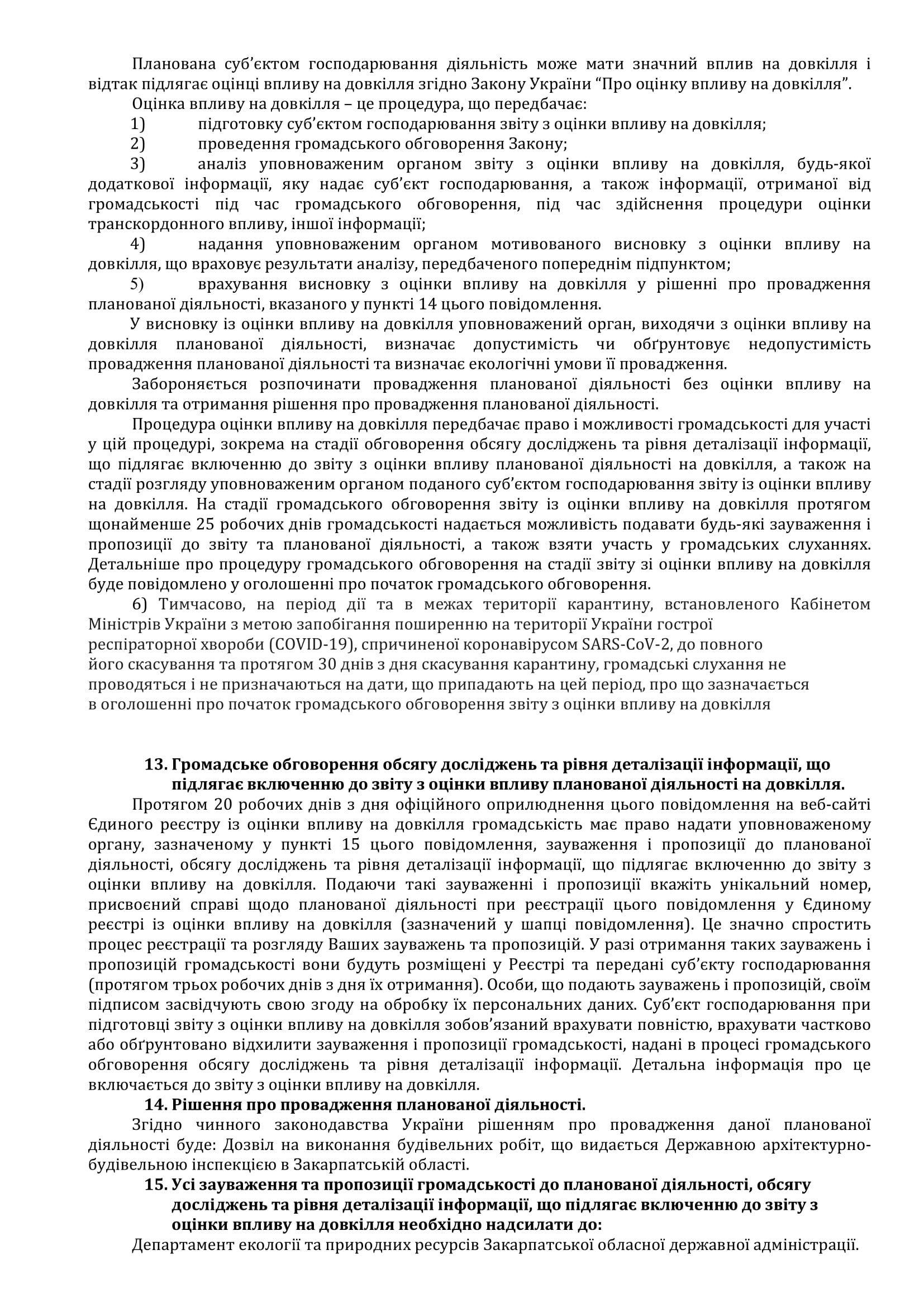 будівельною інспекцією в Закарпатській області. - Усі зауваження та пропозиції громадськості до планованої діяльності, обсягу