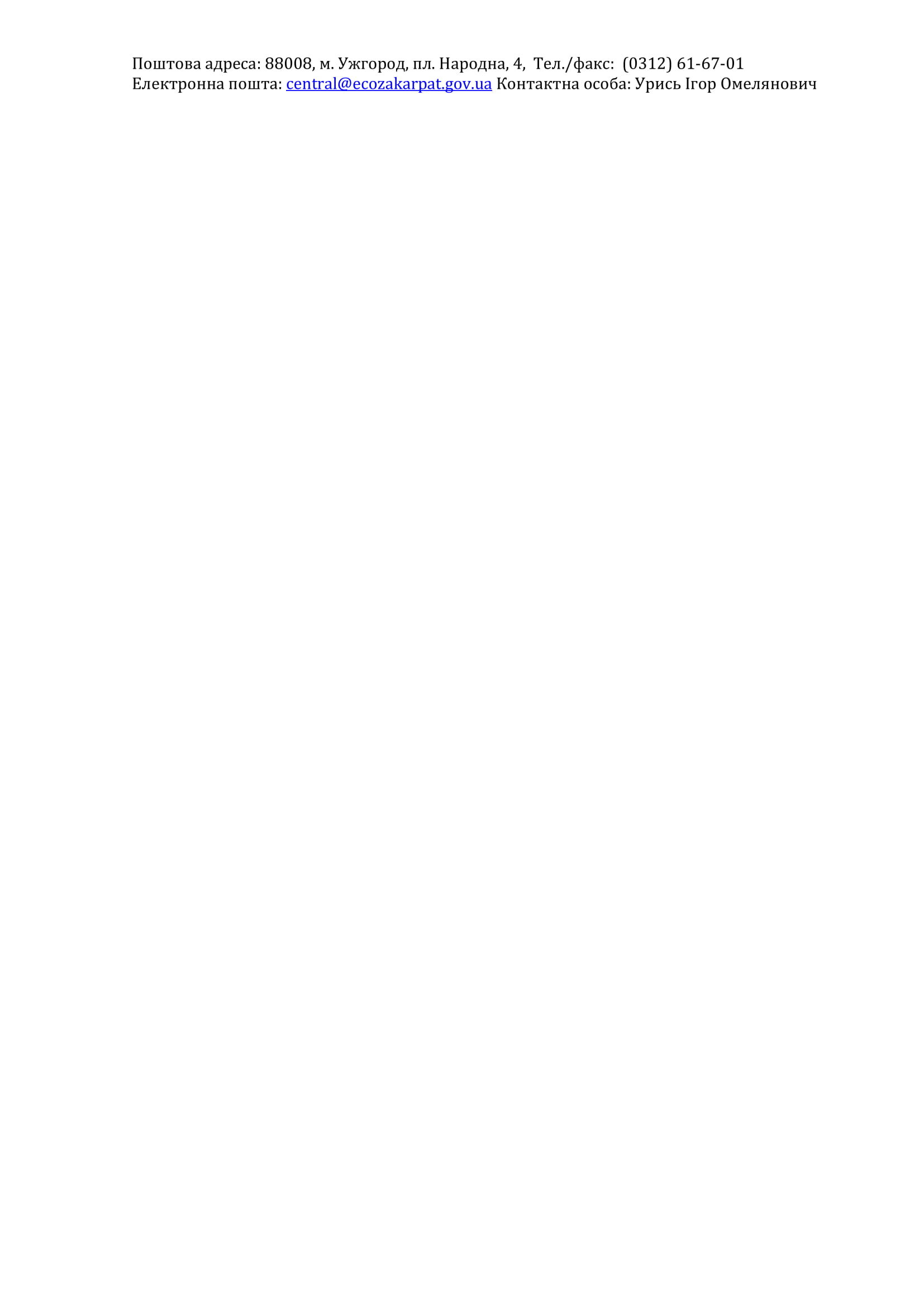 Електронна пошта: central@ecozakarpat.gov.ua Контактна особа: Урись Ігор Омелянович