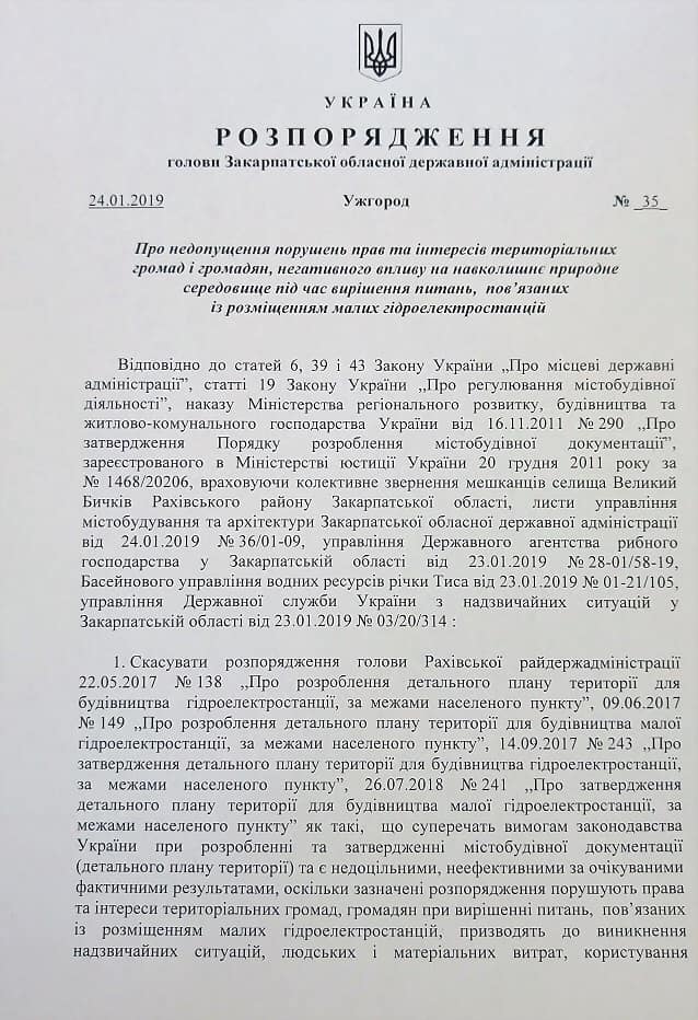 Звертаються до Вас жителі селища міського типу Великий Бичків щодо прийнятия рішення про заборону будівництва міні-ГЕС на р. Шопурка.