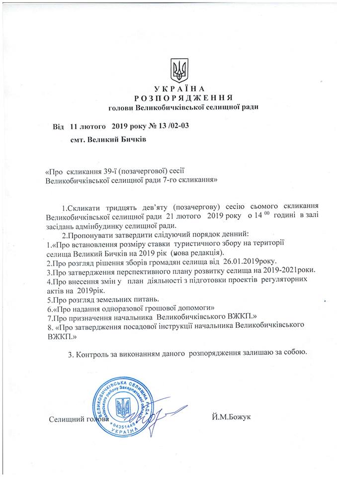 – про прийняте рішення селищної ради з даного питання Великобичківському селищному голові довести до відома голови Закарпатської обласної державної адміністрації, голови Закарпатської обласної ради, голови Рахівської районної державної адміністрації, голови Рахівської районної ради та представника ініціативної групи по захисту річки Шопурка Локоти В.В.