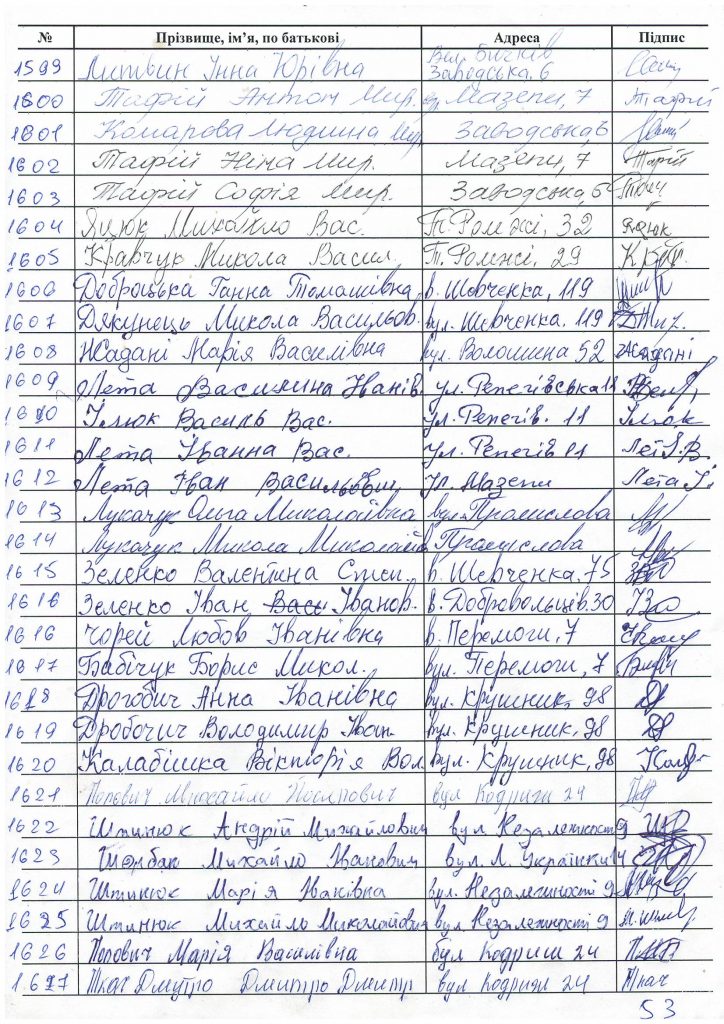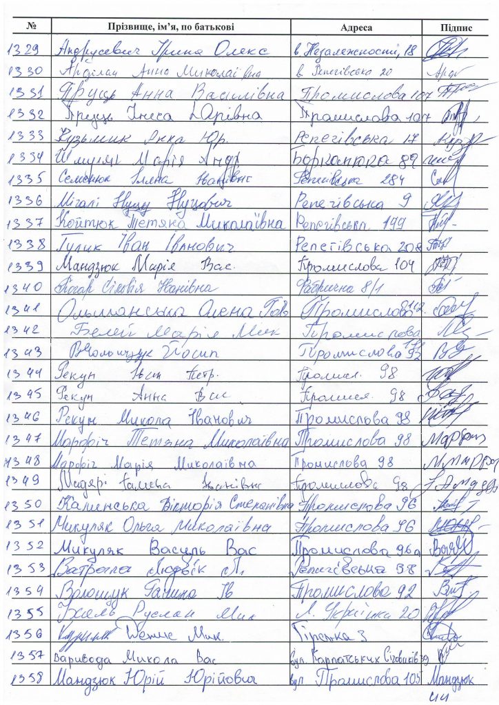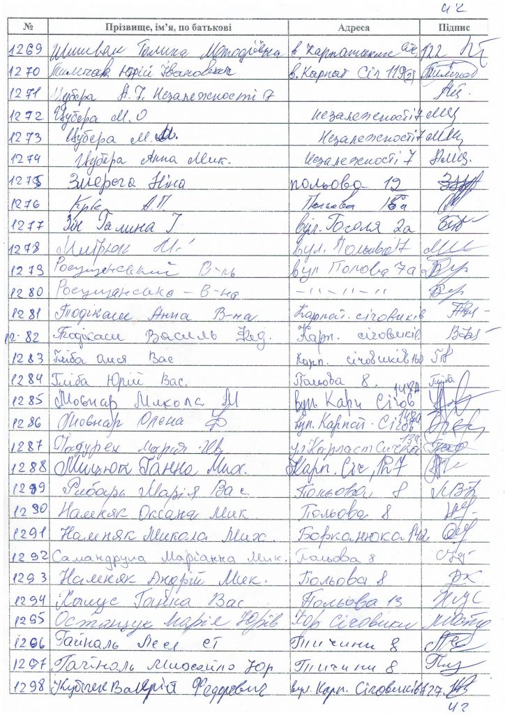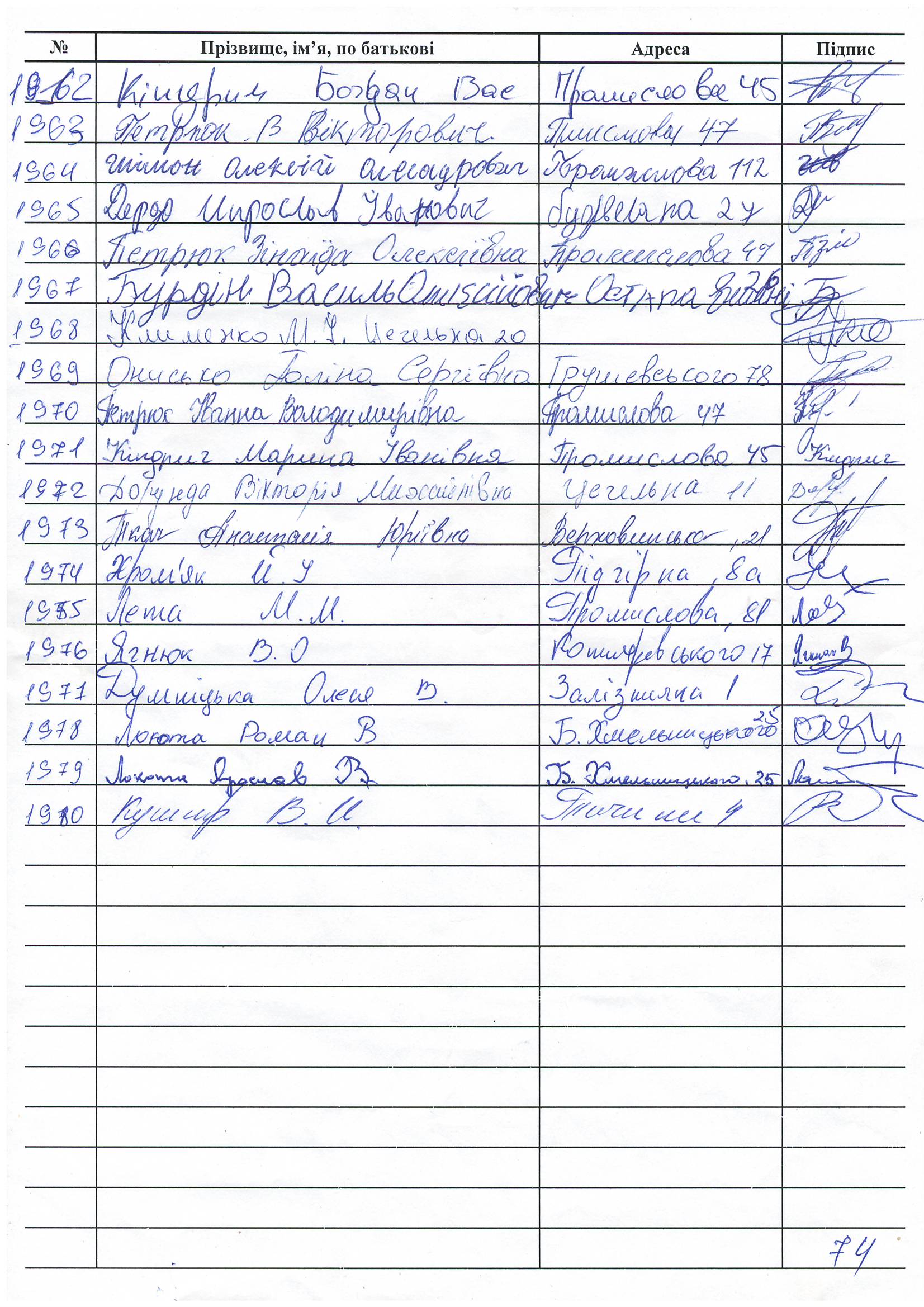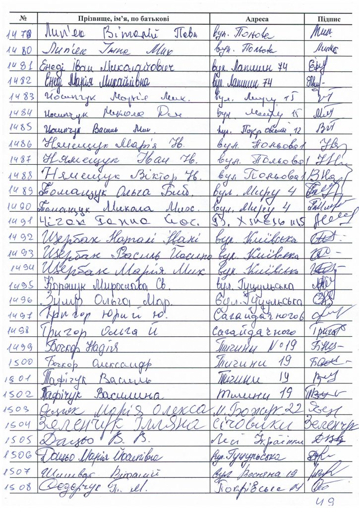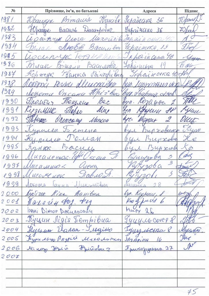 Додаємо копії підписів мешканців смт. Великий Бичків на _75_ арк.