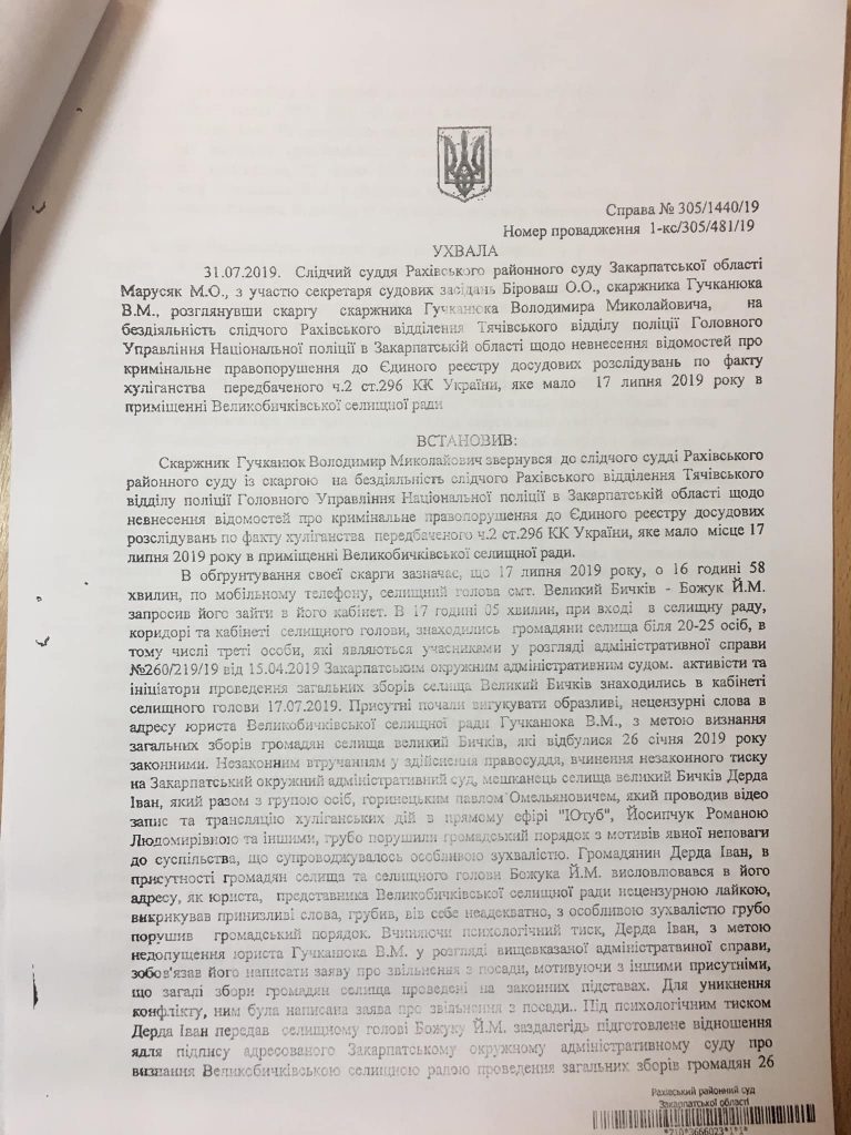 Заява суд та ухвала суду